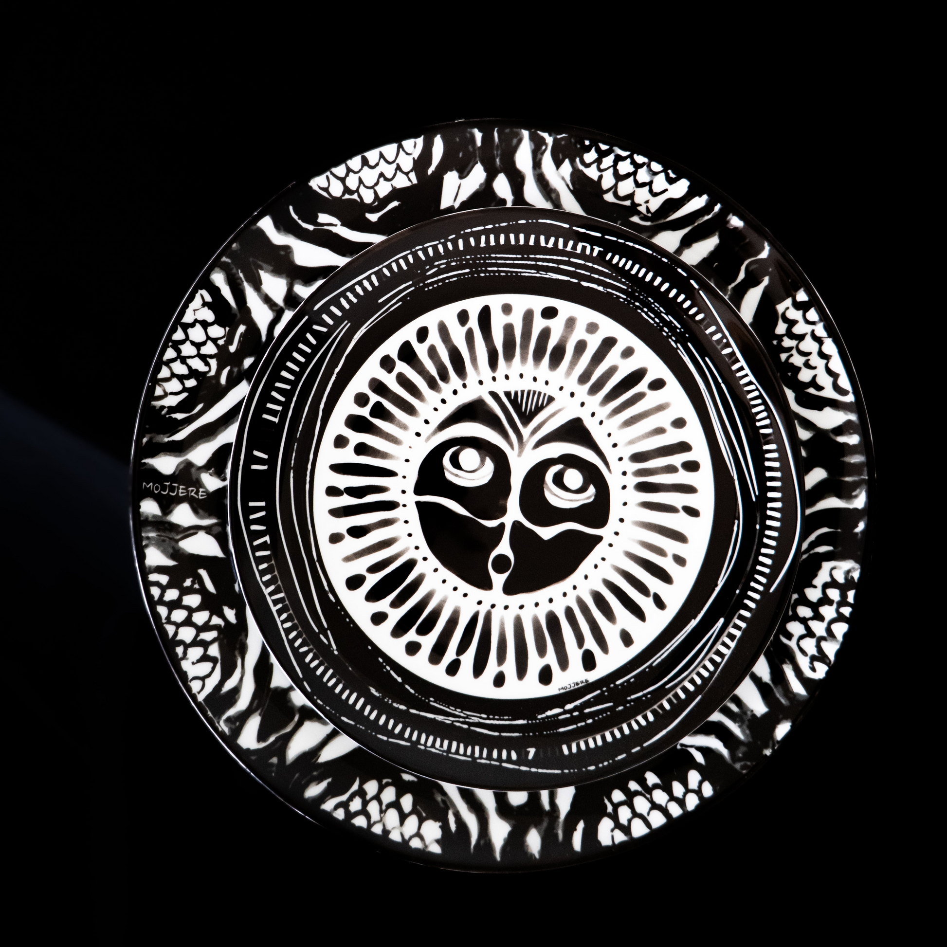 A sculptural trilogy in black and white, NOK pays tribute to the Nok civilization of Nigeria, renowned for timelessly refined terracotta sculptures. Three plates, three universal symbols - foundation, vibration, vision - composed with bold graphic precision for collectors, design lovers, and boutique spaces seeking a true signature piece. Each item is crafted in limited series and comes with a cultural origin card that tells its meaning.