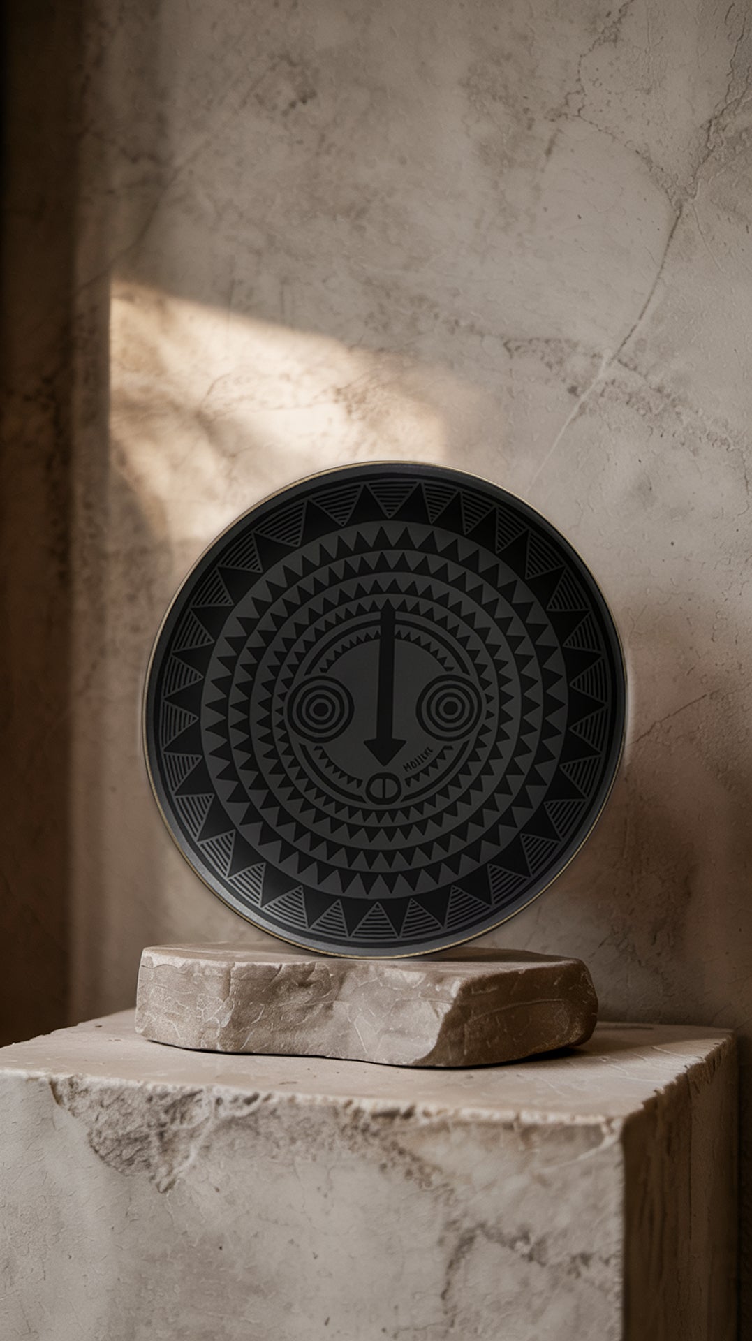 WURO s’inspire du masque solaire du peuple Bwa du Burkina Faso, symbole de la communauté, des rituels et du voyage ancestral. Les motifs en zigzag évoquent le chemin des ancêtres - un langage visuel de guidance et de transmission. Fabriquée par la Manufacture de Couleuvre en France, chaque pièce en porcelaine est à la fois un objet d’art décoratif et un pont culturel : une pièce de collection pensée pour faire entrer l’héritage, l’artisanat et le raffinement contemporain dans les intérieurs d’aujourd’hui.