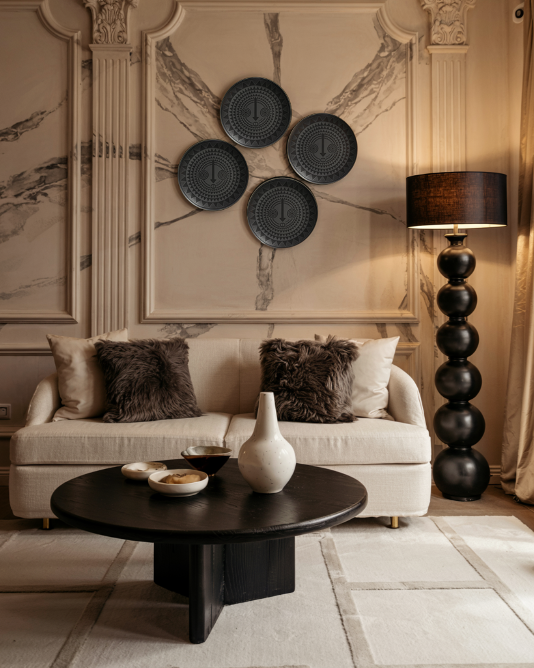 Totem Décoratif en Porcelaine Biscuit - Design Noir Mat | WURO